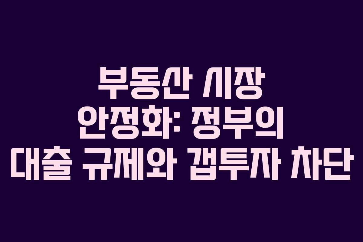 최근 정부는 부동산 시장의 안정을 위해 대출 규제를 강화하고 갭투자를 차단하는 정책을 발표했습니다. 이 정책의 배경과 예상되는 효과에 대해 알아보겠습니다.