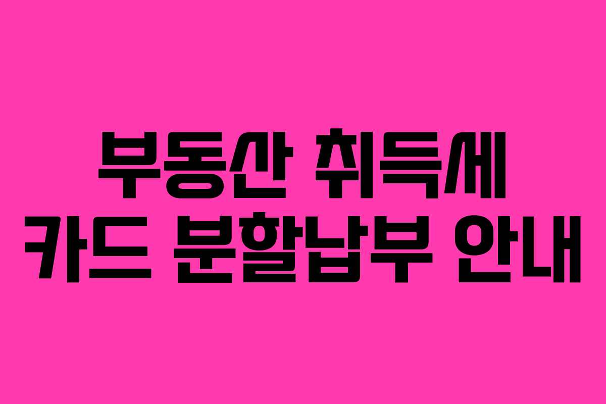 부동산 취득세는 부동산을 취득할 때 발생하는 세금으로, 이를 납부하는 방법에는 여러 가지가 있습니다. 최근에는 분할납부와 카드 납부가 가능한 방법으로 주목받고 있습니다. 이번 글에서는 부동산 취득세의 분할납부와 카드 납부에 대해 자세히 알아보겠습니다.