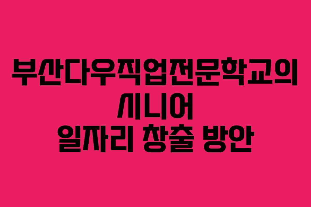 부산다우직업전문학교의 시니어 일자리 창출 방안