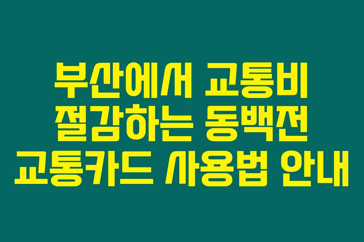 동백전 교통카드는 단순한 교통카드 기능 외에도 여러 혜택을 제공해요. 여러모로 이득을 볼 수 있다니 믿기지 않죠?