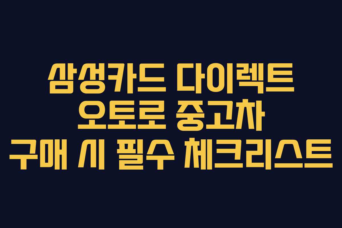 중고차 구매는 많은 사람들이 겪는 중요한 결정입니다. 적절한 정보를 활용하면 보다 현명한 선택을 할 수 있습니다. 특히 삼성카드 다이렉트 오토는 중고차 구매 과정에서 유용한 도구가 될 수 있습니다.