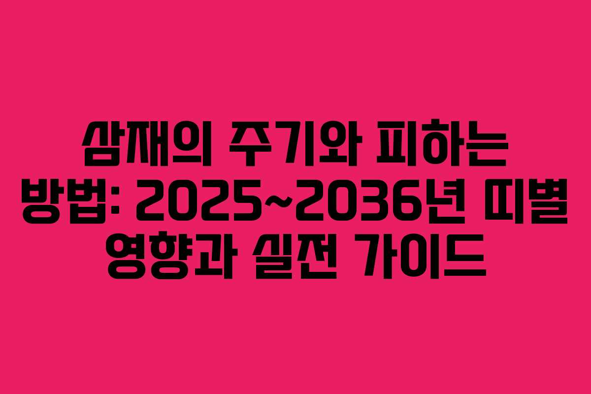 아래를 읽어보시면 2025~2036년 사이 삼재의 기본 원리와 연도별 대응 띠를 한눈에 파악하고, 실생활에 바로 적용 가능한 피하는 방법과 해외의 유사 관념까지 정리됩니다.