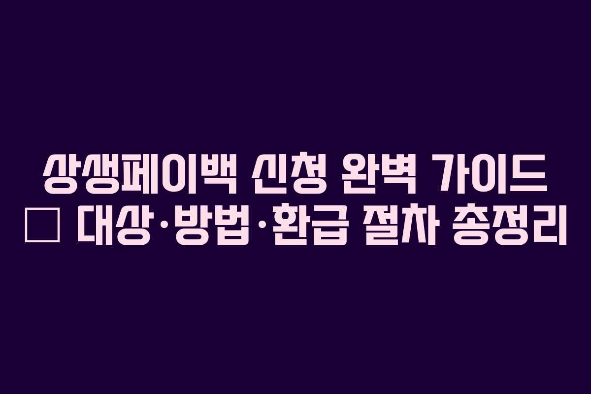 상생페이백은 민생 안정과 지역 상권 회복을 위해 설계된 소비 환급형 지원 제도입니다. 특정 업종이나 지역에서 결제한 금액을 기준으로 환급, 포인트, 캐시백 형태로 되돌려주는 구조가 특징입니다. 2025년 현재, 정책의 명칭과 세부 조건은 사업 공고마다 다를 수 있습니다. 이 글에서는 상생페이백의 개요, 지원 대상, 신청 방법 및 환급 절차에 대해 자세히 설명합니다.