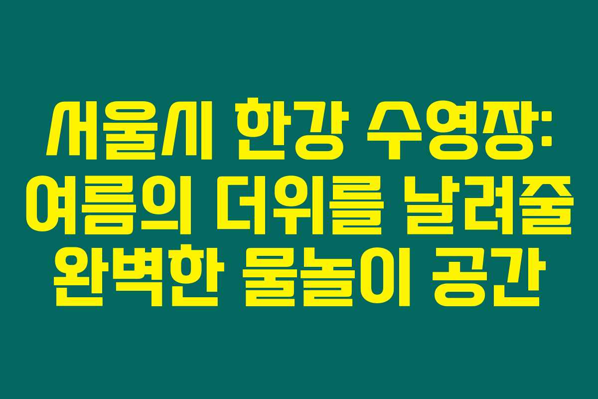 서울시 한강 수영장은 여름철 최고의 물놀이 장소로 다양한 시설과 안전 수칙이 마련되어 있습니다. 무더운 여름, 시원한 한강 수영장에서 즐거운 기억을 만들어보시길 바랍니다. 다음 번에 방문할 계획이라면 친구와 함께 즐거운 시간을 가지세요!