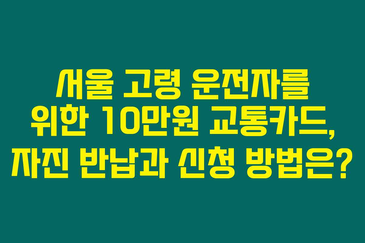 제가 알아본 바로는 서울시는 만 70세 이상의 고령 운전자가 운전면허증을 자진 반납할 경우 10만 원이 충전된 교통카드를 지원하고 있습니다. 이는 고령 운전자의 안전을 위한 정책으로, 교통사고를 예방하고 대중교통 이용을 촉진하는 좋은 기회로 보이더군요. 아래를 읽어보시면 이 정책의 신청 방법과 혜택에 대해 보다 자세한 내용을 알 수 있습니다.