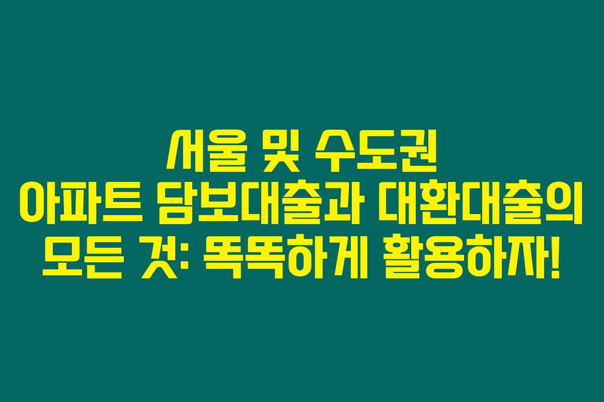 이렇게 서울 및 수도권 아파트 담보대출과 대환대출에 대한 정보를 정리해보았어요. 정확한 정보를 기반으로 여러분이 필요로 하는 담보대출 상품을 현명하게 선택하길 바랍니다! 추가로 궁금한 점이 있다면 언제든지 상담을 받아 보세요! 😊