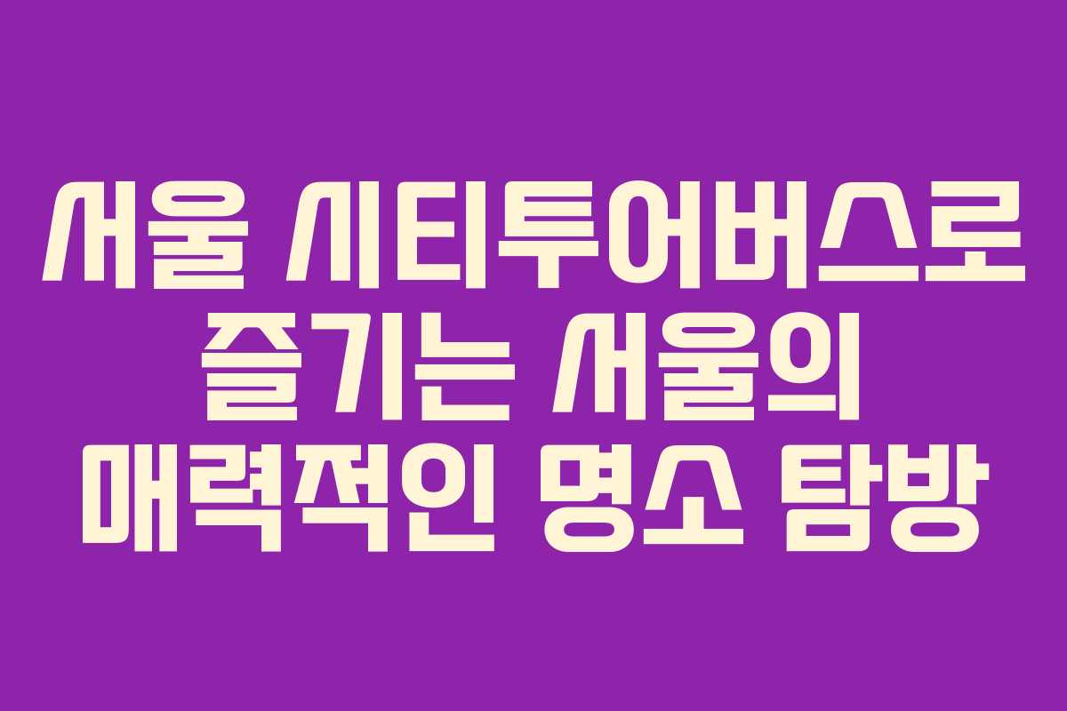 서울 시티투어버스는 서울 내 주요 관광지를 연결하는 관광 전용 버스입니다. 이 버스를 이용하면 한 번의 요금으로 여러 관광지를 편리하게 방문할 수 있어 많은 관광객들에게 인기가 높습니다.
