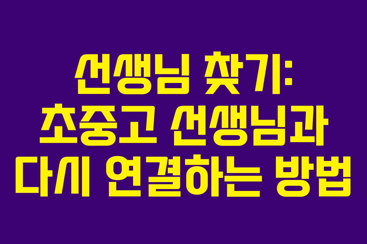 선생님을 찾는 과정은 쉽지 않을 수 있지만, 그만큼 보람과 감동을 느낄 수 있습니다. 교육청 홈페이지, SNS, 동창회 등 다양한 방법을 시도하면서 학창 시절의 소중한 인연을 다시 이어보세요. 감사의 마음을 전하며 함께했던 순간들을 되새길 기회를 만들어 보시기 바랍니다.