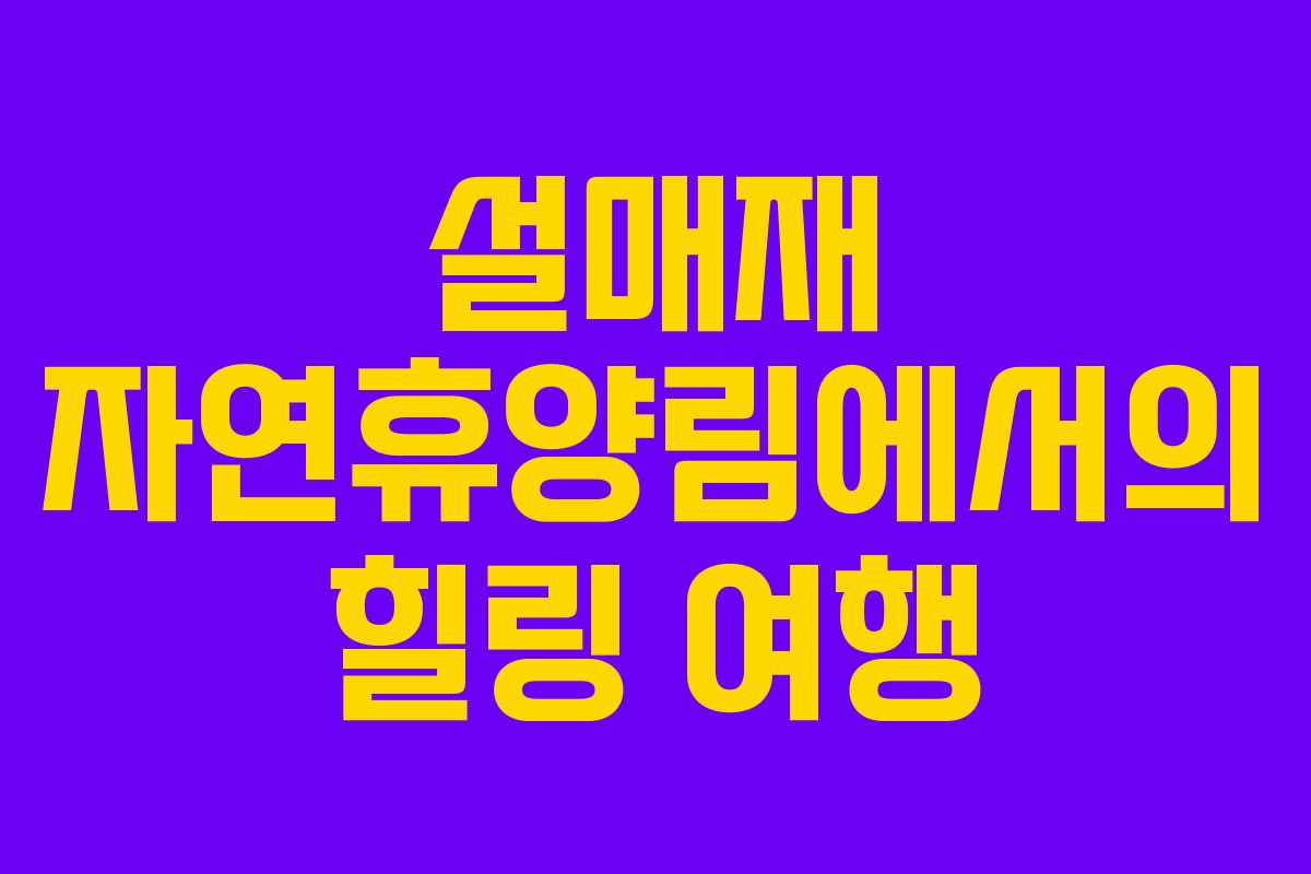 설매재 자연휴양림은 자연 속에서 편안한 휴식을 제공하는 최적의 장소입니다. 주말을 맞아 이곳에서 가족과 함께 특별한 시간을 보내는 계획을 세워보세요.