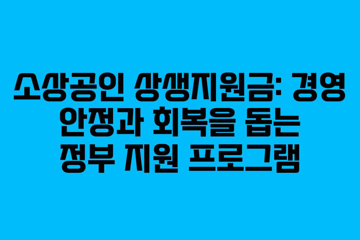 코로나19로 인한 매출 타격이 지속되던 시기에 정부가 지역 경제의 숨 고르고 재도약을 돕기 위해 마련한 재정 지원 제도입니다. 이 프로그램은 소상공인들의 경영상 불안감을 완화하고, 빠른 회복을 견인하는 데 초점을 둡니다.