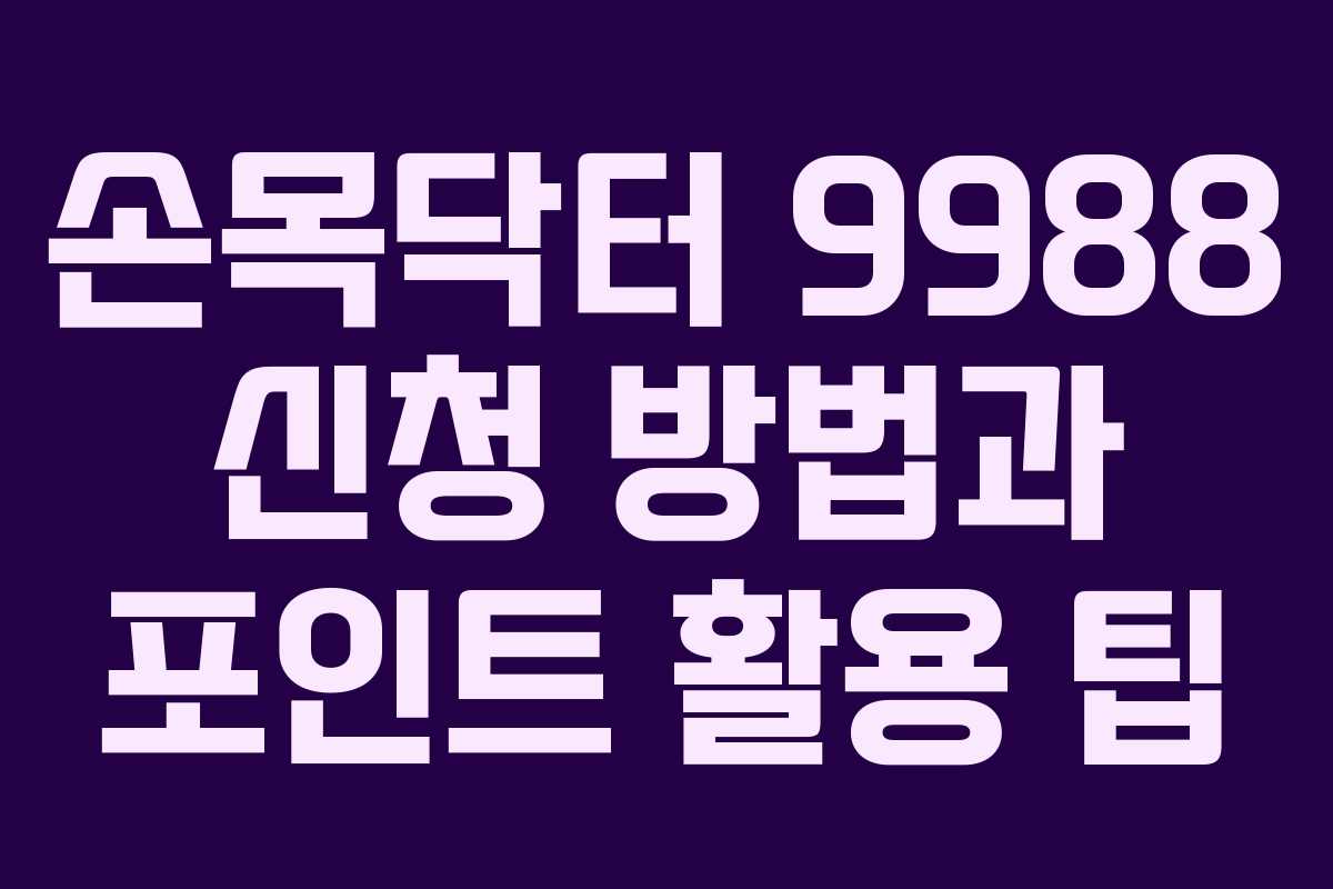 손목닥터 9988은 현대인의 손목 건강을 지키기 위한 필수 프로그램으로, 손목 통증을 완화하고 일상생활에서의 편안함을 제공합니다. 이 글에서는 손목닥터 9988의 신청 방법과 포인트 활용 팁을 자세히 안내합니다.