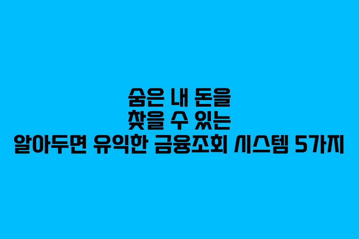 현대 사회에서 경제적 안정은 매우 중요합니다. 하지만 누구나 한 푼 두 푼 모은 돈이 숨어 있을 수 있다는 사실을 알고 계신가요? 금융조회 시스템을 활용하면 잊고 있었던 계좌나 보험금을 찾아내어 생활에 보탤 수 있는 소중한 자원이 될 수 있습니다. 아래에서 소개할 다양한 금융조회 시스템을 통해 자신의 숨은 재산을 찾아보세요.