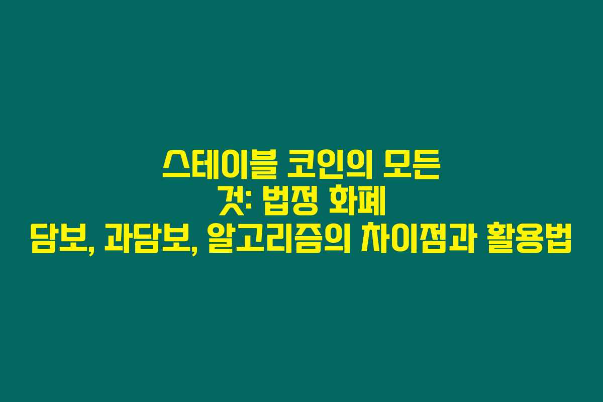 제가 직접 경험해본 결과로는 스테이블 코인은 암호화폐 투자와 거래에서 중요한 역할을 하고 있습니다. 특히, 스테이블 코인의 수요가 증가함에 따라 그 형태와 기능도 다양해지고 있습니다. 아래를 읽어보시면 법정 화폐 담보, 과담보, 알고리즘 스테이블 코인의 특징과 장단점을 좀 더 잘 이해할 수 있을 거예요.