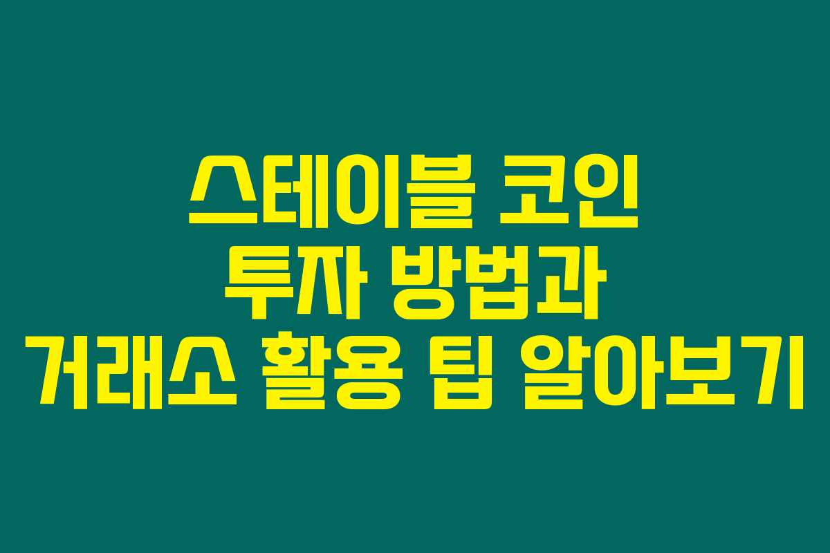 제가 직접 경험해본 결과로는, 스테이블 코인 투자 방법은 다양하고 안전하게 진행할 수 있는 방법이 많답니다. 스테이블 코인은 가격 변동성이 낮아 투자에 대한 리스크를 줄여주는 효과가 있으며, 많은 거래소에서 쉽게 접근할 수 있는 자산입니다. 아래를 읽어보시면 스테이블 코인 투자 방법과 거래소 활용에 대한 정보를 알차게 정리해드리겠습니다.