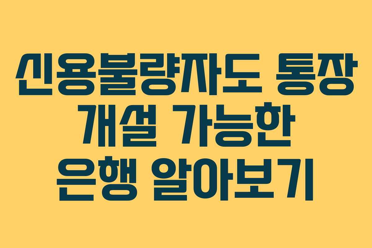 신용불량자가 되면 여러 가지 제약을 경험하게 됩니다. 특히 금융 거래가 어려워지는 상황에서 통장 개설과 휴대폰 개통은 필수적인 요소로 여겨집니다. 이번 글에서는 신용불량자가 통장을 개설할 수 있는 방법과 조건에 대해 알아보겠습니다.