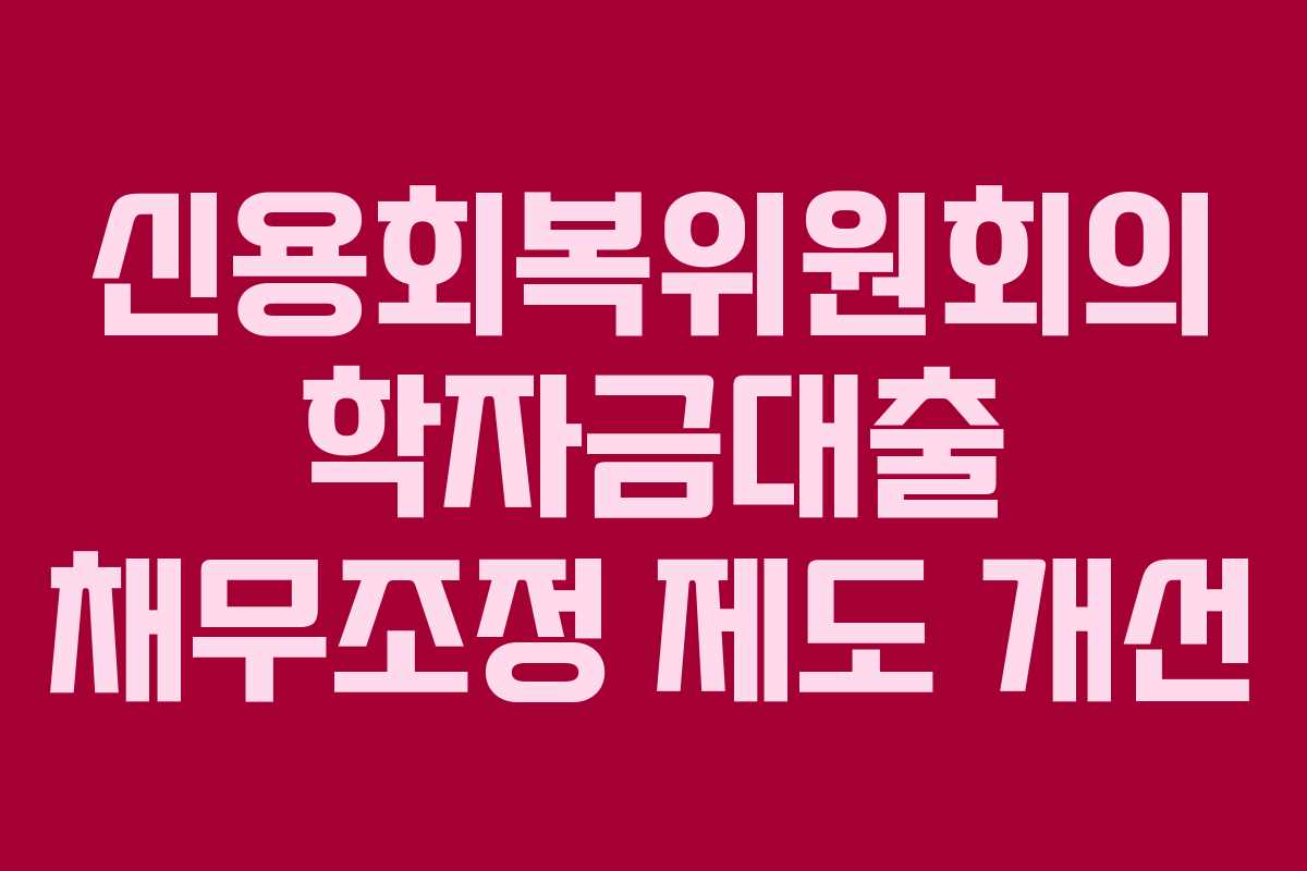 신용회복위원회는 학자금대출 채무조정의 효율성을 높이기 위해 여러 제도를 보완하였습니다. 이에 따라, 서민의 금융생활을 지원하기 위한 법률 시행령 개정안이 국무회의에서 의결되었습니다.