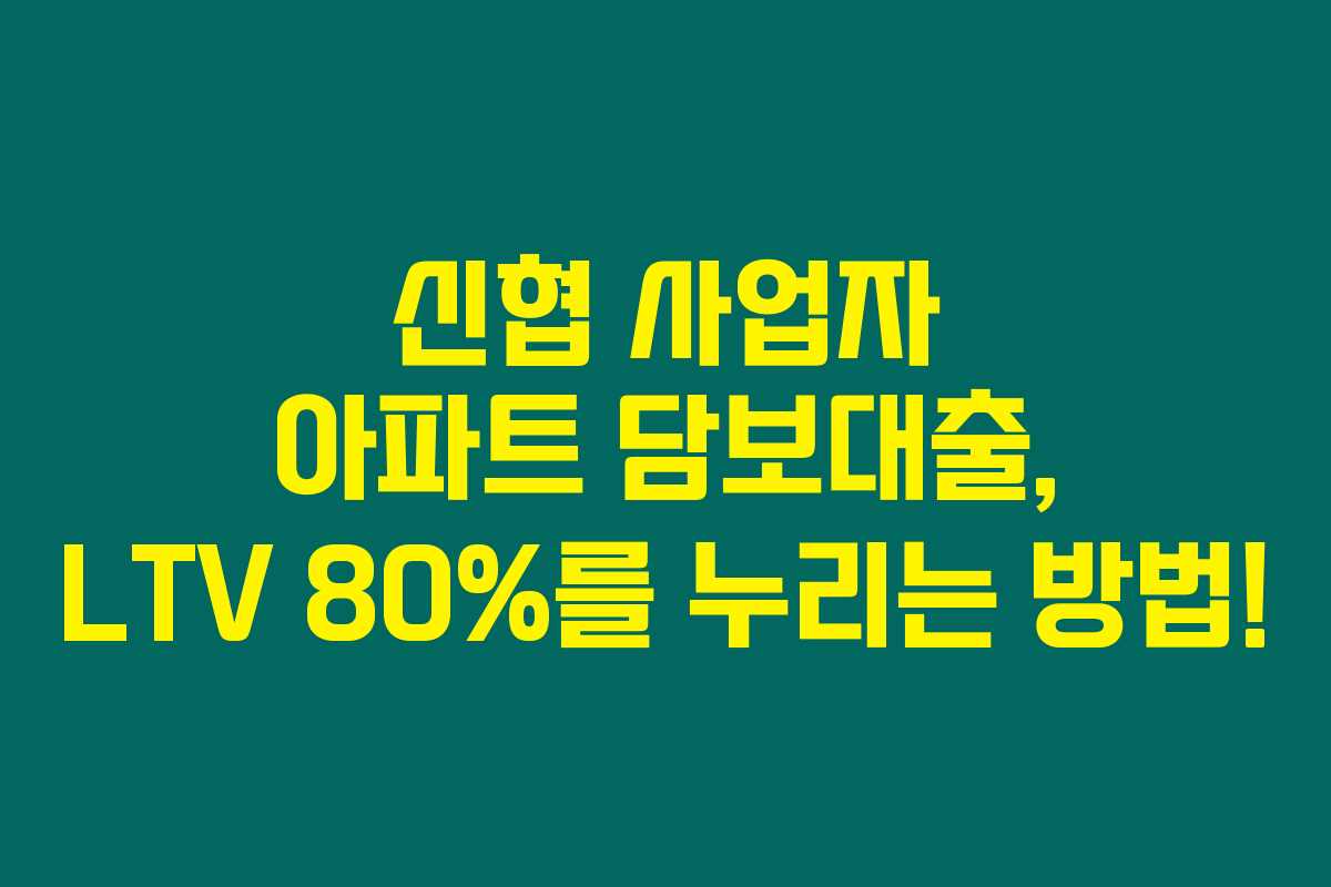 신협의 사업자 아파트 담보대출은 신용이 부족한 사업자에게 매력적인 선택지입니다. 제가 경험하고 리서치한 정보를 통해 여러분도 쉽게 대출을 받을 수 있기를 바랍니다. 특히, LTV 80%를 활용해 최대 한도를 끌어내는 방법을 잘 활용해보세요!