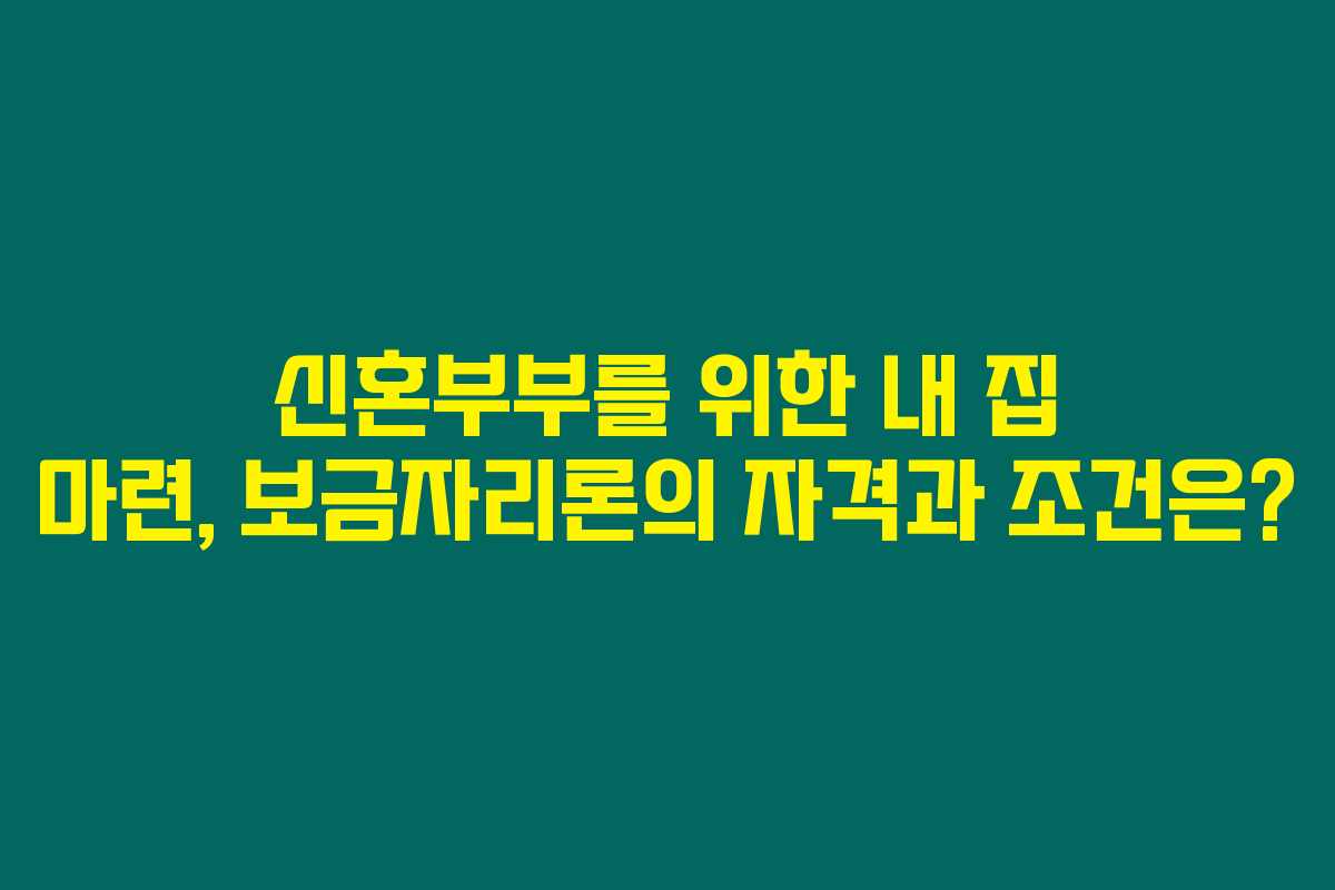 보금자리론은 신혼부부들에게 특히 유용한 혜택을 제공합니다. 대출을 받을 자격이 되는 조건은 다음과 같아요.