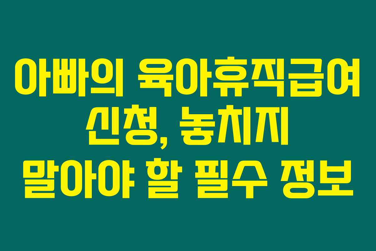 제가 알아본 바로는 아빠가 육아휴직을 신청할 때 받는 육아휴직급여는 가정의 재정에 큰 도움이 됩니다. 최근 육아휴직을 사용하고 돈이 어떻게 들어오는지 궁금증이 많았는데요, 저 또한 주관적인 경험을 바탕으로 어떻게 신청하면 좋을지 직접 체크해본 결과를 공유하고자 해요. 아래를 읽어보시면 육아휴직급여를 어떻게 신청하고 받을 수 있는지에 대한 유용한 정보를 찾으실 수 있을 것입니다.