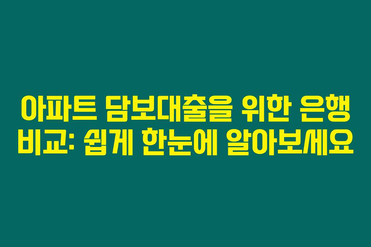 아파트 담보대출은 은행마다 서로 다른 금리와 한도, 우대 조건이 있어 선택할 때 주의가 필요해요. 제가 직접 경험해본 결과로는, 원하는 조건에 부합하는 은행을 찾기 위해서 여러 곳의 조건을 비교하는 것이 중요하답니다. 아래를 읽어보시면, 각 은행의 특징을 한눈에 파악하고 최적의 대출을 받을 수 있는 방법에 대한 정보를 제공할게요.
