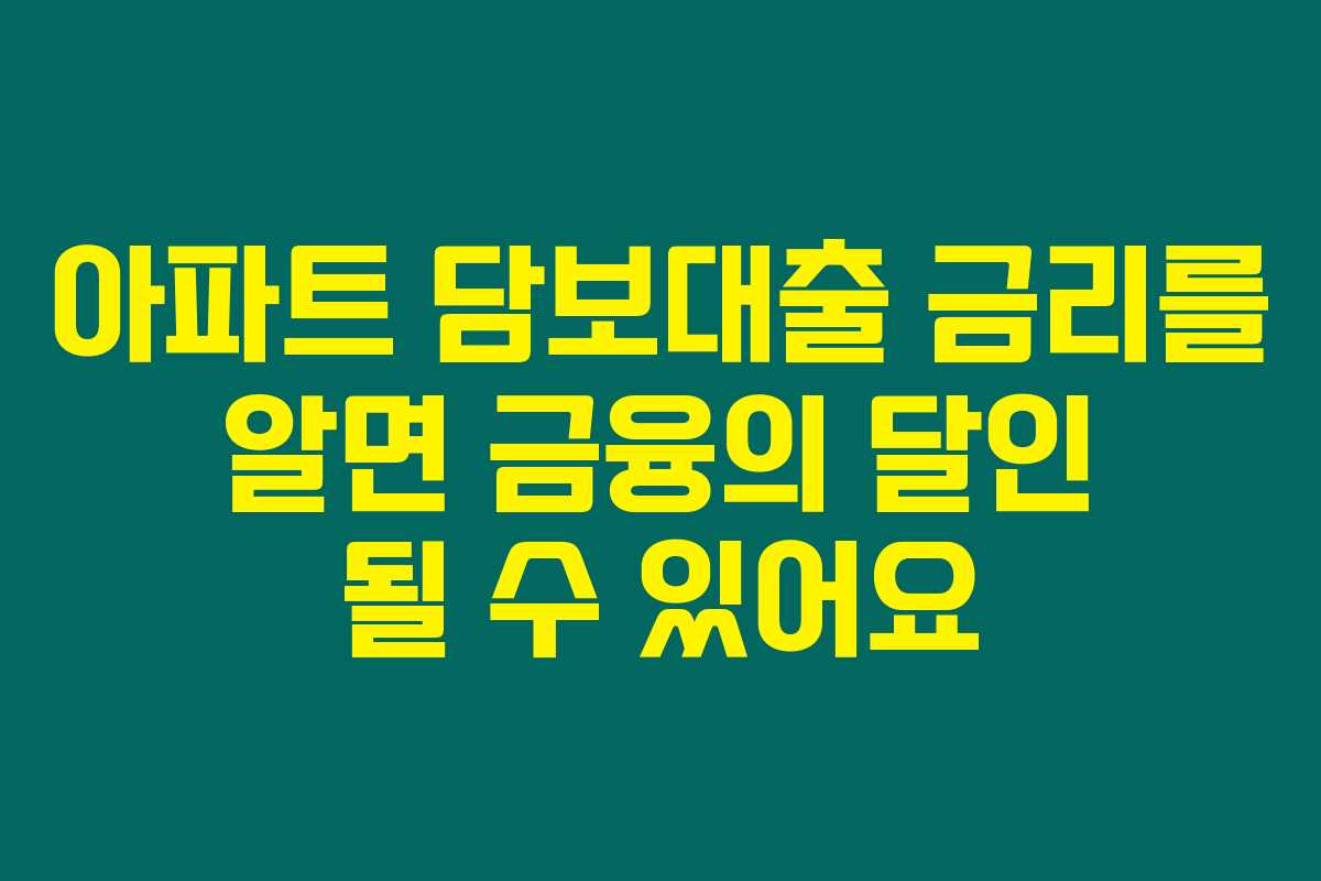 제가 직접 경험해본 결과로는, 아파트 담보대출은 주택을 담보로 필요한 자금을 대출받는 매우 유용한 금융 상품입니다. 이 글에서는 아파트 담보대출 금리, 대출 조건, 대출 한도 등을 상세히 설명해드릴게요. 아래를 읽어보시면 현명한 금융 결정을 내리시는 데 큰 도움이 될 것이라 확신합니다.