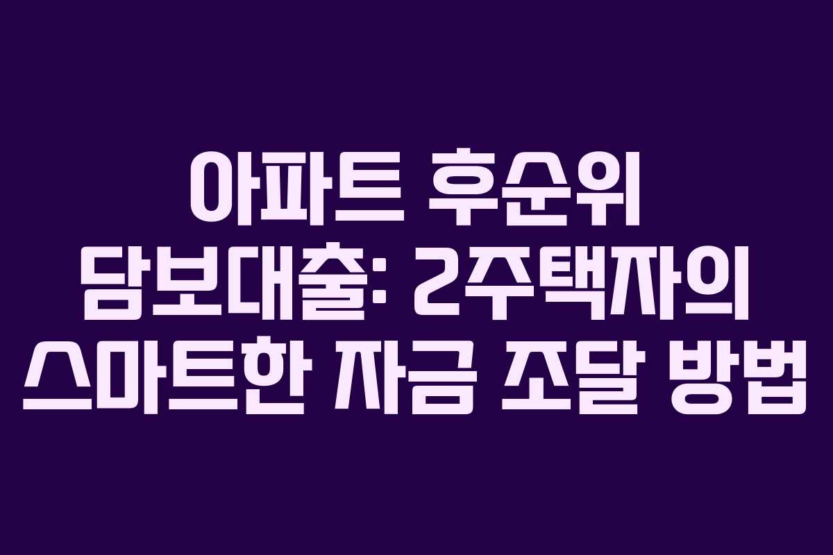 아파트 후순위 담보대출: 2주택자의 스마트한 자금 조달 방법