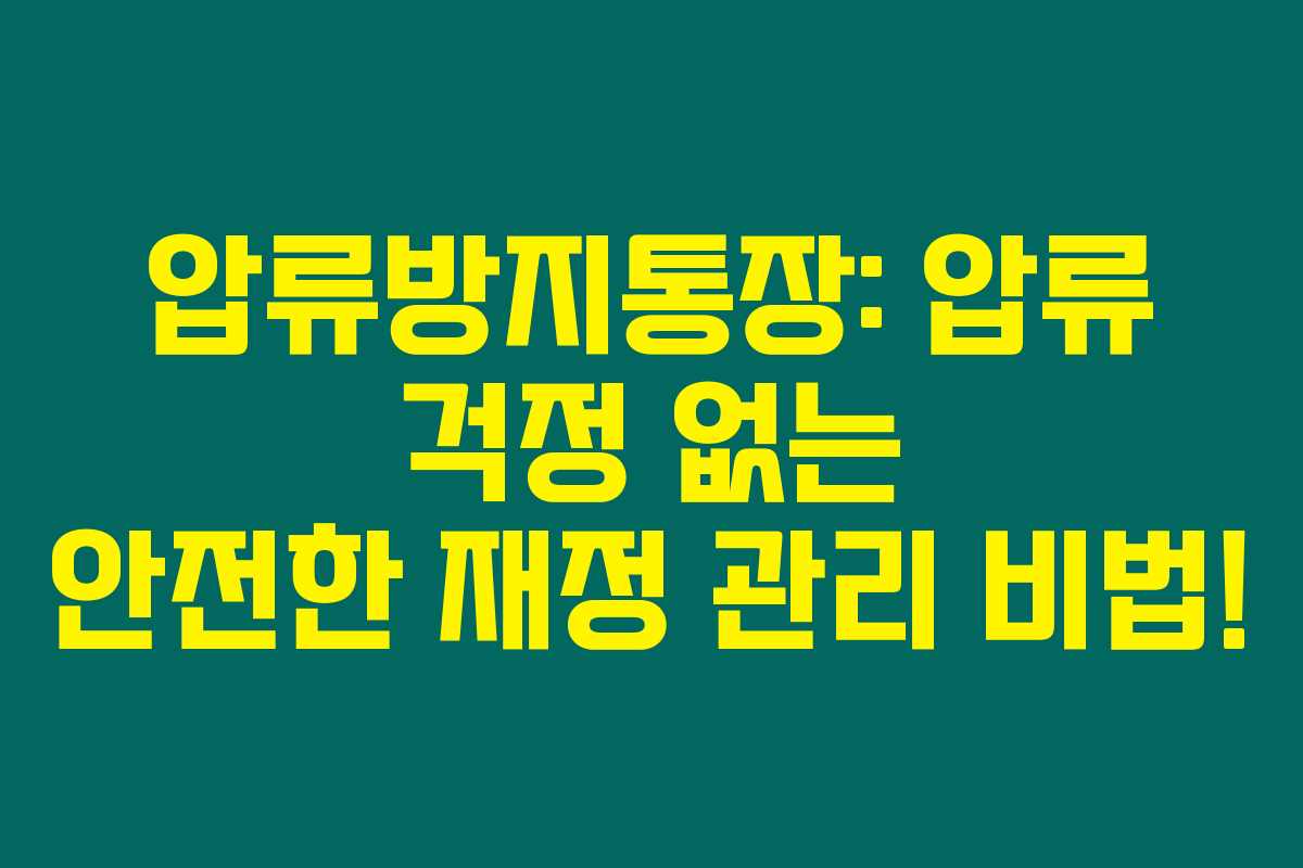 압류방지통장: 압류 걱정 없는 안전한 재정 관리 비법!