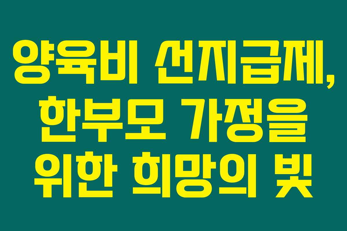제가 직접 리서치한 바로는 양육비 선지급제는 경제적으로 어려움을 겪고 있는 한부모 가정을 위해 마련된 중요한 정책입니다. 이 제도가 시행되면서 많은 가정들이 조금이나마 경제적 부담을 덜게 될 것으로 기대됩니다. 아래를 읽어보시면 양육비 선지급제의 주요 내용과 신청 방법에 대해 자세히 알아보실 수 있습니다.