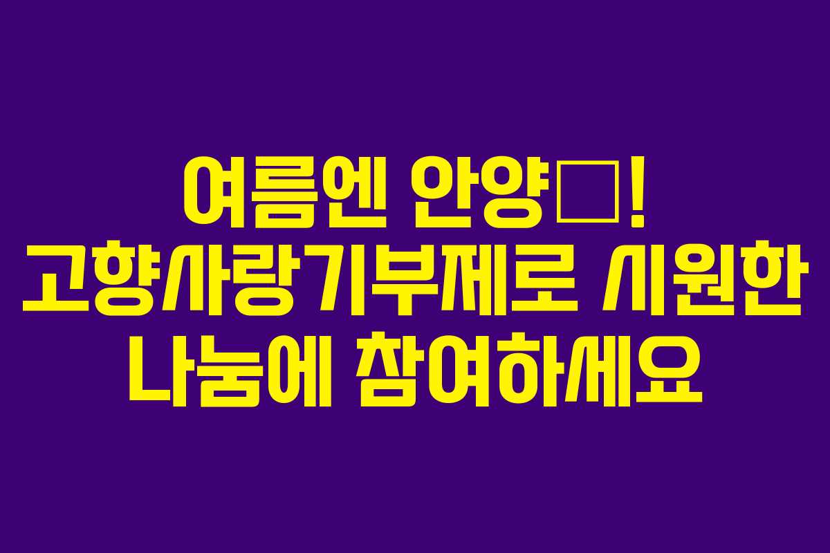 무더운 여름, 시원한 기부로 고향을 응원하는 기회를 제공합니다. 고향사랑기부제는 여러분이 소중한 기부금을 통해 지역 발전에 기여하고, 동시에 다양한 혜택을 누릴 수 있는 제도입니다.