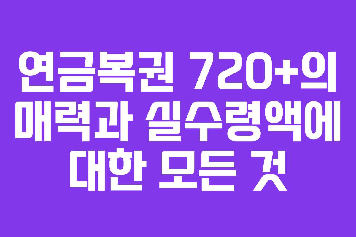 연금복권 720+는 매달 일정한 수익을 제공하는 복권으로, 많은 사람들에게 꿈과 희망을 안겨줍니다. 이 글에서는 연금복권의 당첨 조건, 실수령액, 그리고 당첨 확률을 높이는 팁까지 자세히 알아보겠습니다.
