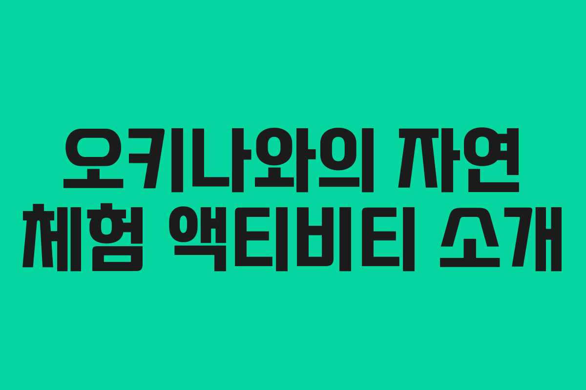 오키나와의 다양한 자연 체험 액티비티는 아름다운 풍경과 신비로운 자연을 경험할 수 있는 기회를 제공합니다. 여행 계획에 꼭 포함해보세요!