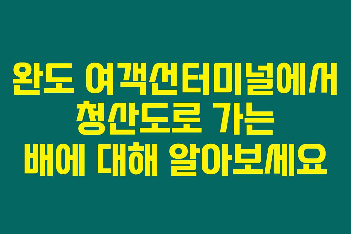 청산도로 떠나는 배편을 예고하는 글을 찾고 계신가요? 완도 여객선터미널에서 청산도행 배를 탑승하는 방법과 유용한 정보들을 알려드릴게요. 만약 청산도를 이번 여행 리스트에 추가하고 싶다면 꼭 읽어보세요.