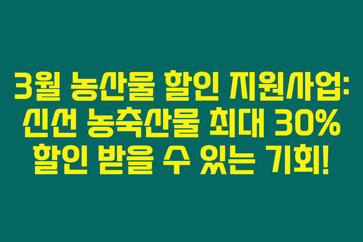 3월 농산물 할인 지원사업: 신선 농축산물 최대 30% 할인 받을 수 있는 기회!