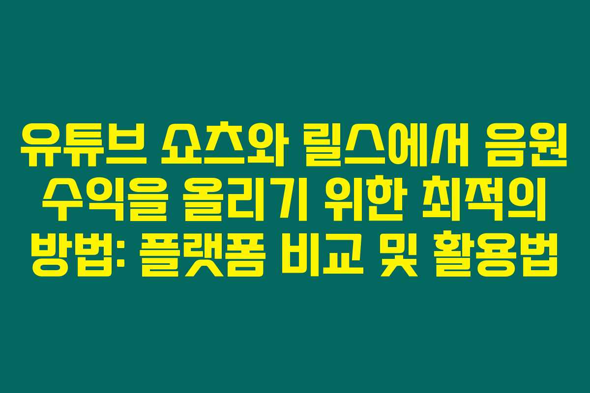 유튜브 쇼츠와 릴스에서 음원 수익을 올리기 위한 최적의 방법: 플랫폼 비교 및 활용법