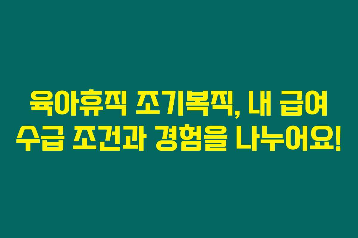 이번 글은 육아휴직 중 조기복직을 고려하고 있는 분들을 위해 제가 직접 경험해본 내용을 중심으로, 급여 수급 조건 및 절차에 대해 자세히 알려드릴게요. 제가 직접 체크해본 바로는 급여 수급 관련 내용이 복잡하기 때문에, 명확하게 정리할 필요가 있더라고요. 아래를 읽어보시면 조기복직 시 궁금한 점들이 해결될 거예요.