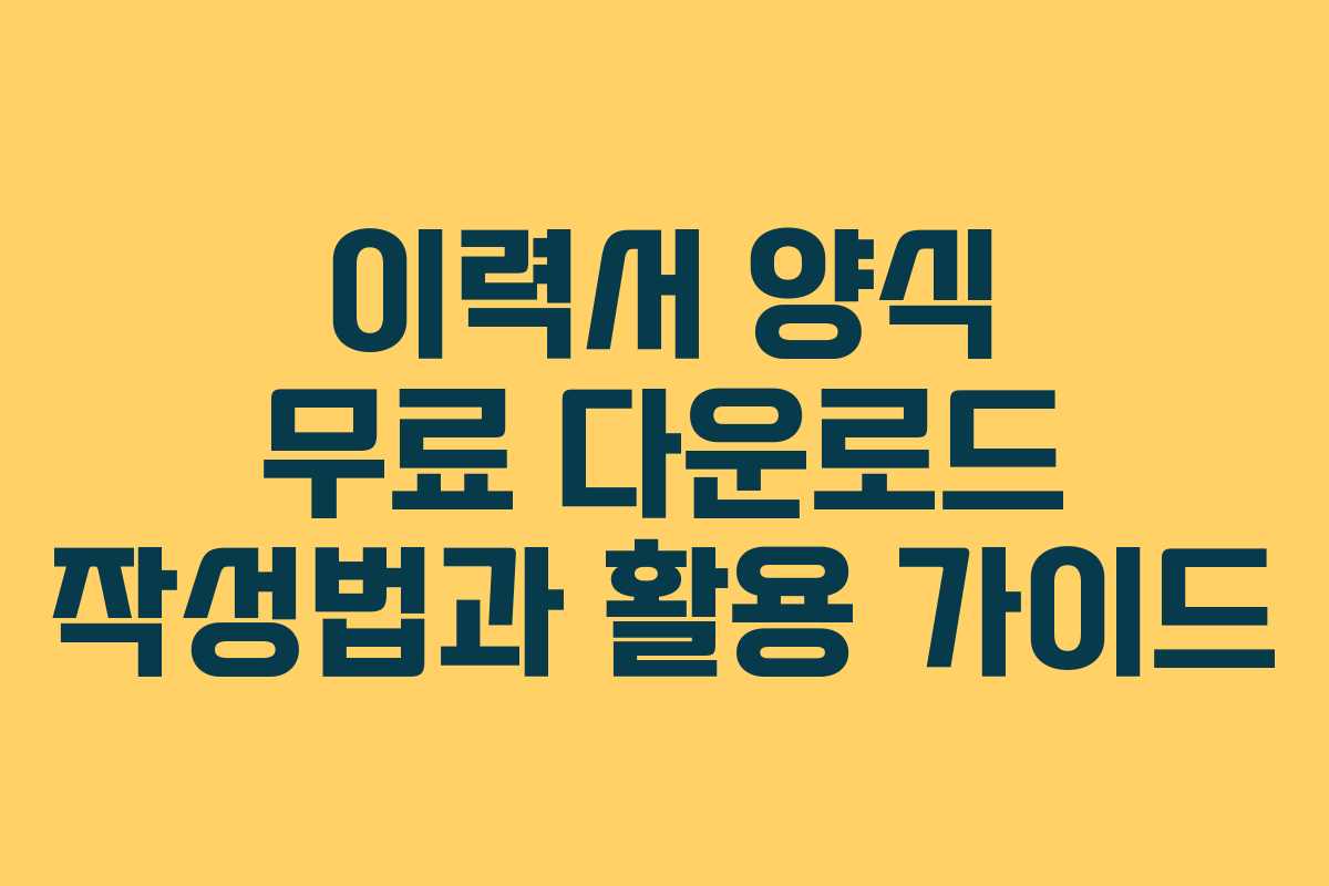 이력서는 구직자의 학력과 경력을 체계적으로 정리하여 자신의 가치를 표현하는 중요한 문서입니다. 무료로 제공되는 이력서 양식을 활용하면 간편하게 이력서를 작성할 수 있습니다. 이 글에서는 이력서 양식을 무료로 다운로드하는 방법과 작성 요령, 주의사항 등을 안내하겠습니다.