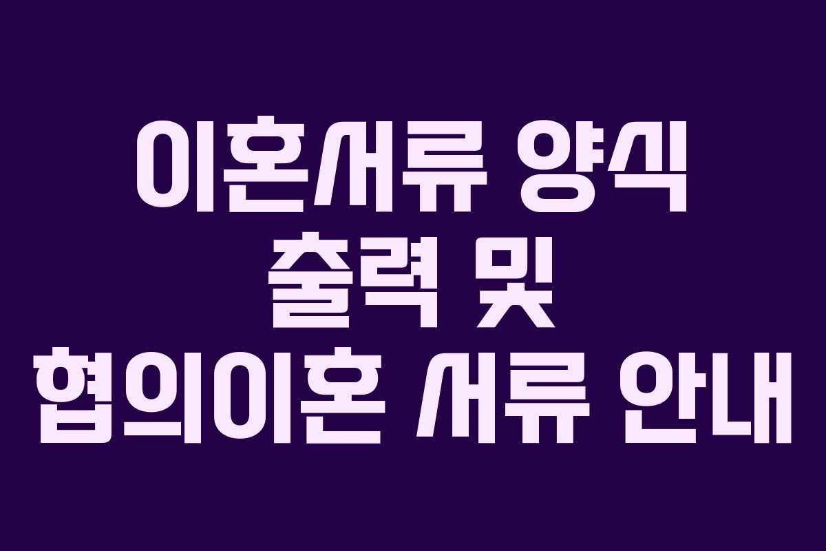 이혼서류 양식 출력 및 협의이혼 서류 안내