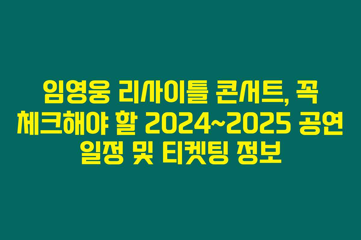 임영웅 리사이틀 콘서트가 2024년 연말부터 2025년 연초까지 개최됩니다. 팬이라면 놓칠 수 없는 이 공연에 대한 중요 정보를 놓치지 않도록 미리 확인해보세요. 이 글에서는 임영웅 리사이틀 콘서트의 공연 일정과 티켓팅 예매 일정 및 가격 정보에 대해 자세하게 안내해 드립니다.