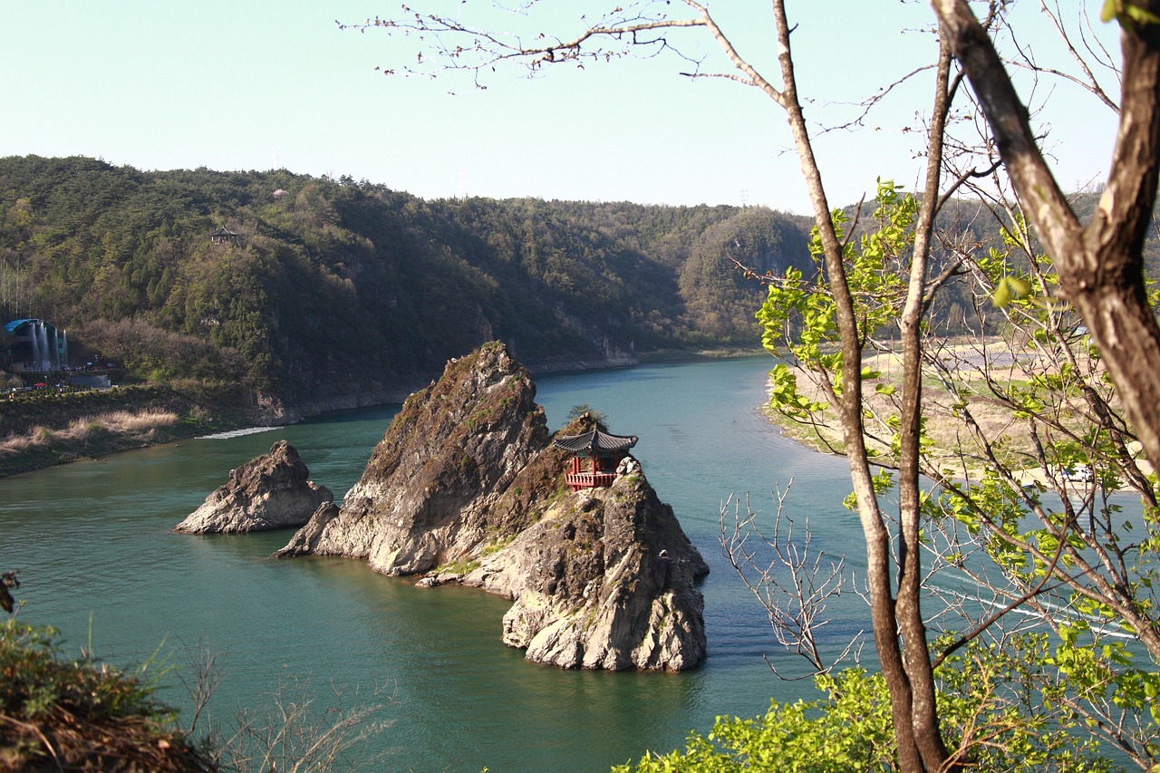 도담삼봉은 단양의 대표적인 관광지 중 하나로, 남한강의 아름다운 경치를 가진 돌산이 특징입니다.