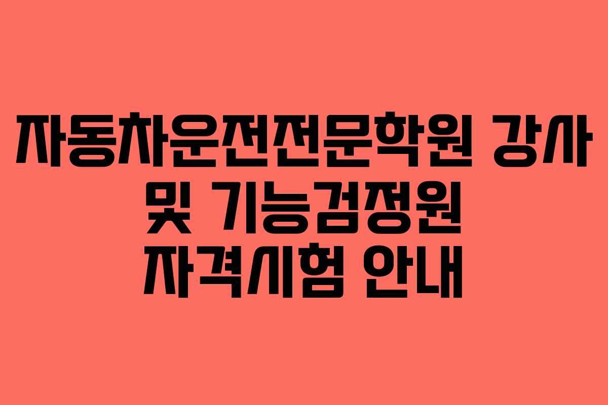 자동차운전전문학원 강사 및 기능검정원 자격시험은 자동차 운전 교육의 품질을 높이기 위한 중요한 과정입니다. 필요한 정보를 충분히 숙지하여 준비하시기 바랍니다.