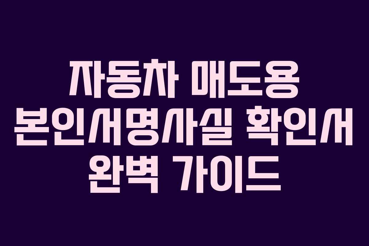 자동차 매도용 본인서명사실 확인서는 매도 절차를 간소화하고 안전하게 만들어주는 중요한 서류입니다. 이 가이드를 통해 발급 방법과 유효 기간, 인감증명서와의 차이점을 명확히 이해하고 준비하여, 보다 쉽게 소유권 이전 절차를 완료하시기 바랍니다.
