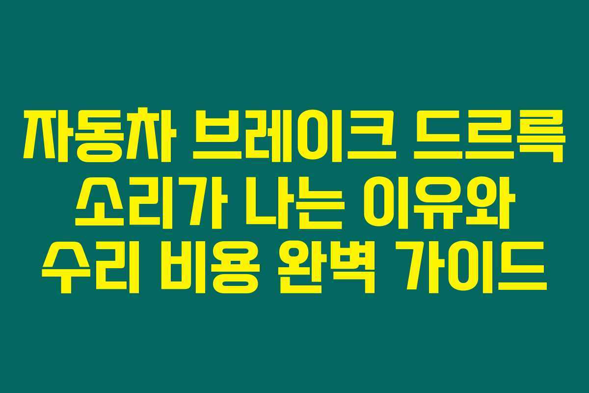 자동차 브레이크 드르륵 소리가 나는 이유와 수리 비용 완벽 가이드