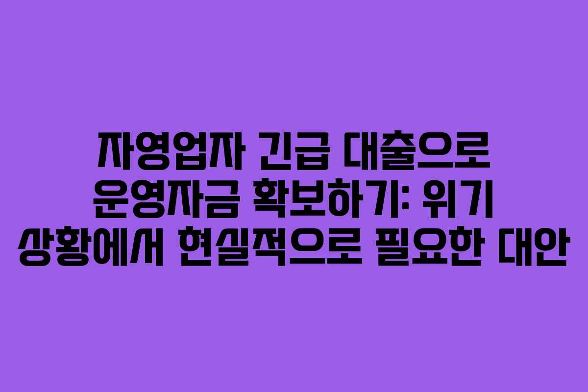 자영업자 긴급 대출은 위기 상황에서 운영 자금의 확보를 돕는 중요한 수단입니다. 각 상품의 조건을 비교하고, 자신의 상황에 가장 잘 맞는 대출을 선택해 경영 안정성과 지속 가능한 성장을 도모하시길 바랍니다. 신청 전에는 관련 정보를 충분히 확인하고 전문가와 상담하는 것이 바람직합니다.