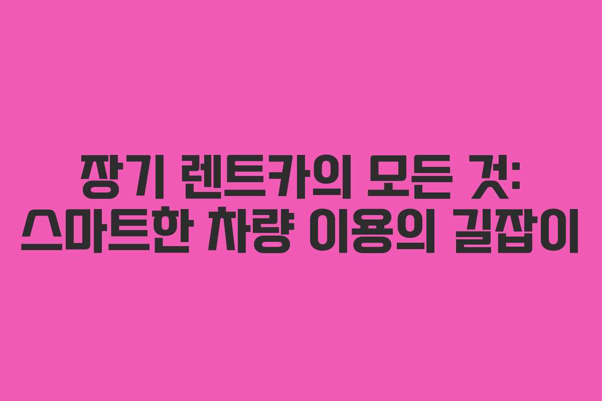 장기 렌트카는 초기 비용 부담 없이 차량을 이용할 수 있는 좋은 대안입니다. 이 글에서는 장기 렌트카의 장점부터 가격 구성, 인기 모델, 보험, 반납 정책 등 다양한 정보를 제공합니다.