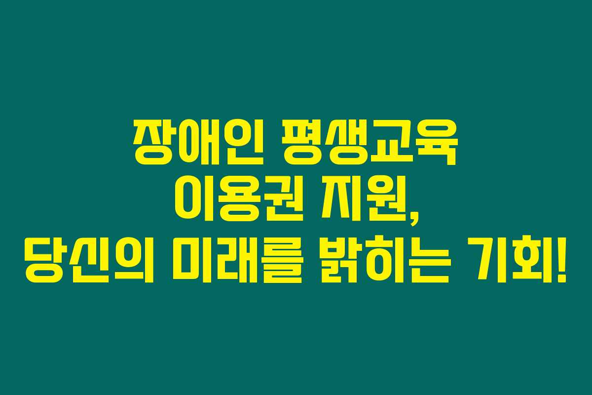 장애인 평생교육 이용권은 장애인들에게 희망의 빛을 비추어 줄 중요한 기제입니다. 이러한 제도를 통해 더 많은 장애인들이 교육에 참여하고, 자신의 꿈을 실현할 수 있는 기회를 가지길 바랍니다. 추가적인 정보나 도움이 필요하신 경우, 관련 기관에 문의하시길 추천드립니다.