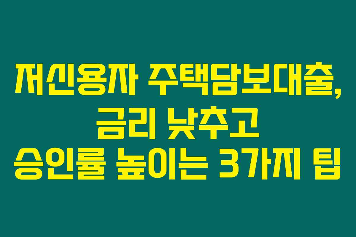 제가 직접 리서치한 바로는, 저신용자의 주택담보대출은 일반적으로 금리가 높고 승인률이 낮다고 알려져 있습니다. 하지만 다양한 방법을 활용하면 금리를 낮추고 대출 승인률을 높일 수 있답니다. 아래를 읽어보시면 저신용자가 주택담보대출을 효율적으로 이용할 수 있는 3가지 방법을 알 수 있을 거예요.
