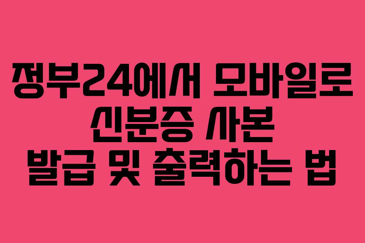 비대면 서비스의 시대에 접어들면서 신분증 사본 발급도 간편해졌습니다. 정부24 모바일 앱을 활용하면 언제든지 손쉽게 필요한 서류를 발급받을 수 있으니, 적극적으로 이용해 보시기 바랍니다.