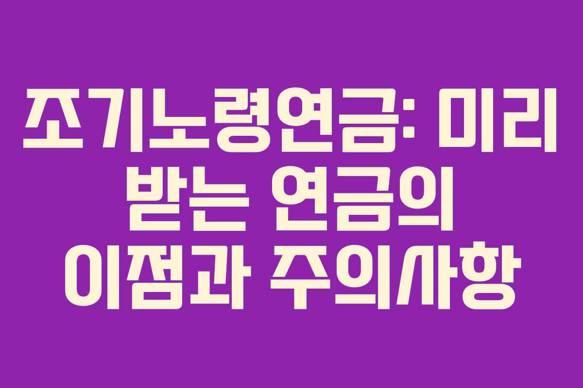 조기노령연금은 국민연금 가입자가 법정 수급연령보다 최대 5년 일찍 연금을 받을 수 있는 제도입니다. 이를 받기 위해서는 가입기간이 10년 이상이어야 하며, 소득이 없는 상태여야 합니다. 조기 수령할 경우 연금액이 감액되므로 신중한 결정이 필요합니다.