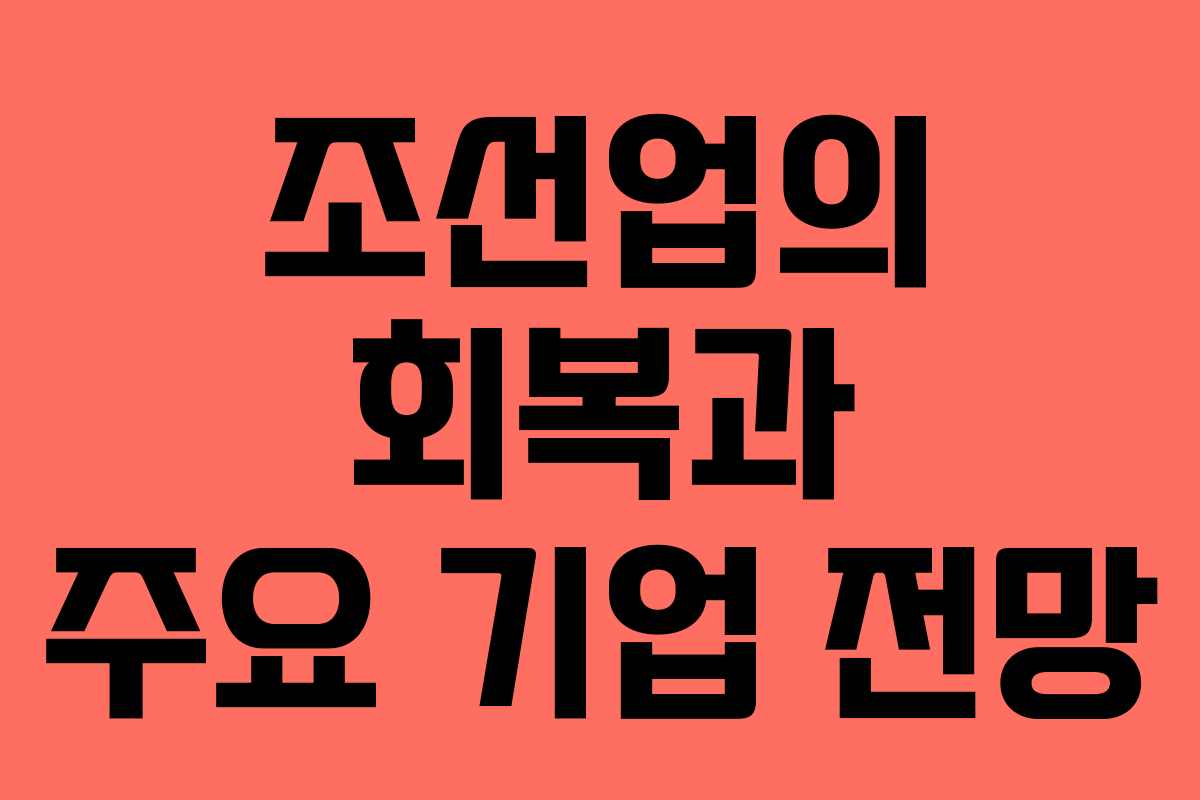 조선업은 코로나19로 인해 큰 타격을 입었으나, 2020년 말부터 대형 수주가 이어지며 회복세를 보이고 있습니다. 특히, 친환경 선박과 스마트 선박 시대가 도래하면서 조선업의 미래에 대한 긍정적인 전망이 나오고 있습니다.