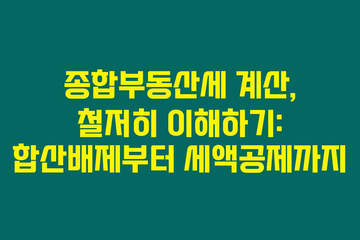 제가 직접 체크해본 바로는 종합부동산세는 부동산 소유자라면 반드시 알아야 할 중요한 세금이에요. 종합부동산세의 계산 방법에는 합산배제, 세액공제, 그리고 세부담상한 같은 다양한 요소가 포함되는데, 이 내용들을 제대로 이해하면 세금 부담을 더 저렴하게 줄일 수 있답니다. 아래를 읽어보시면 이러한 내용을 구체적으로 알아보실 수 있을 거예요.
